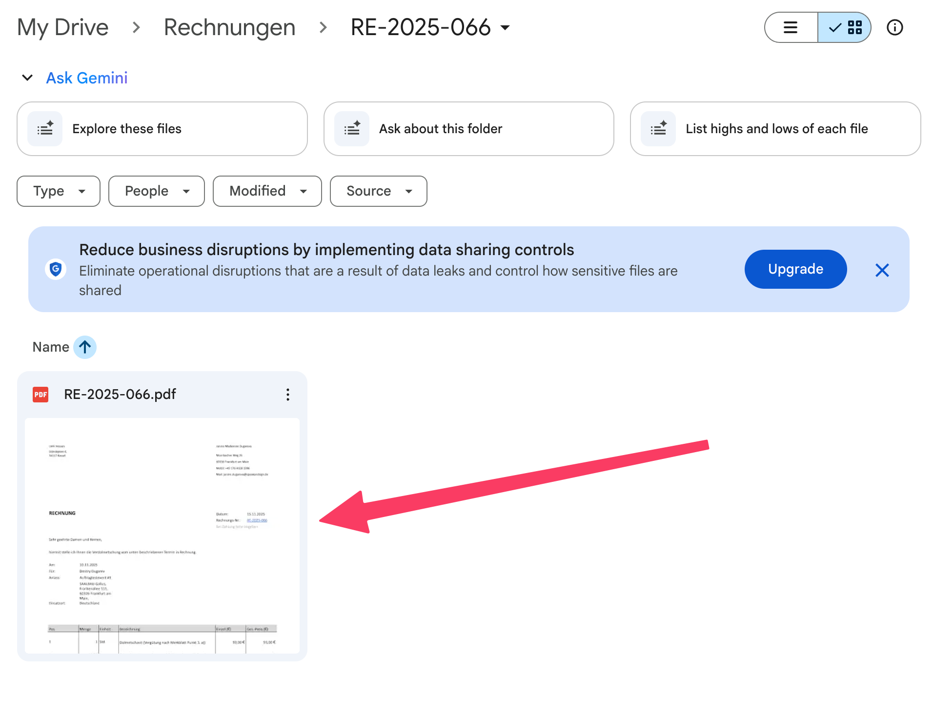 Rechnung als PDF im Drive -