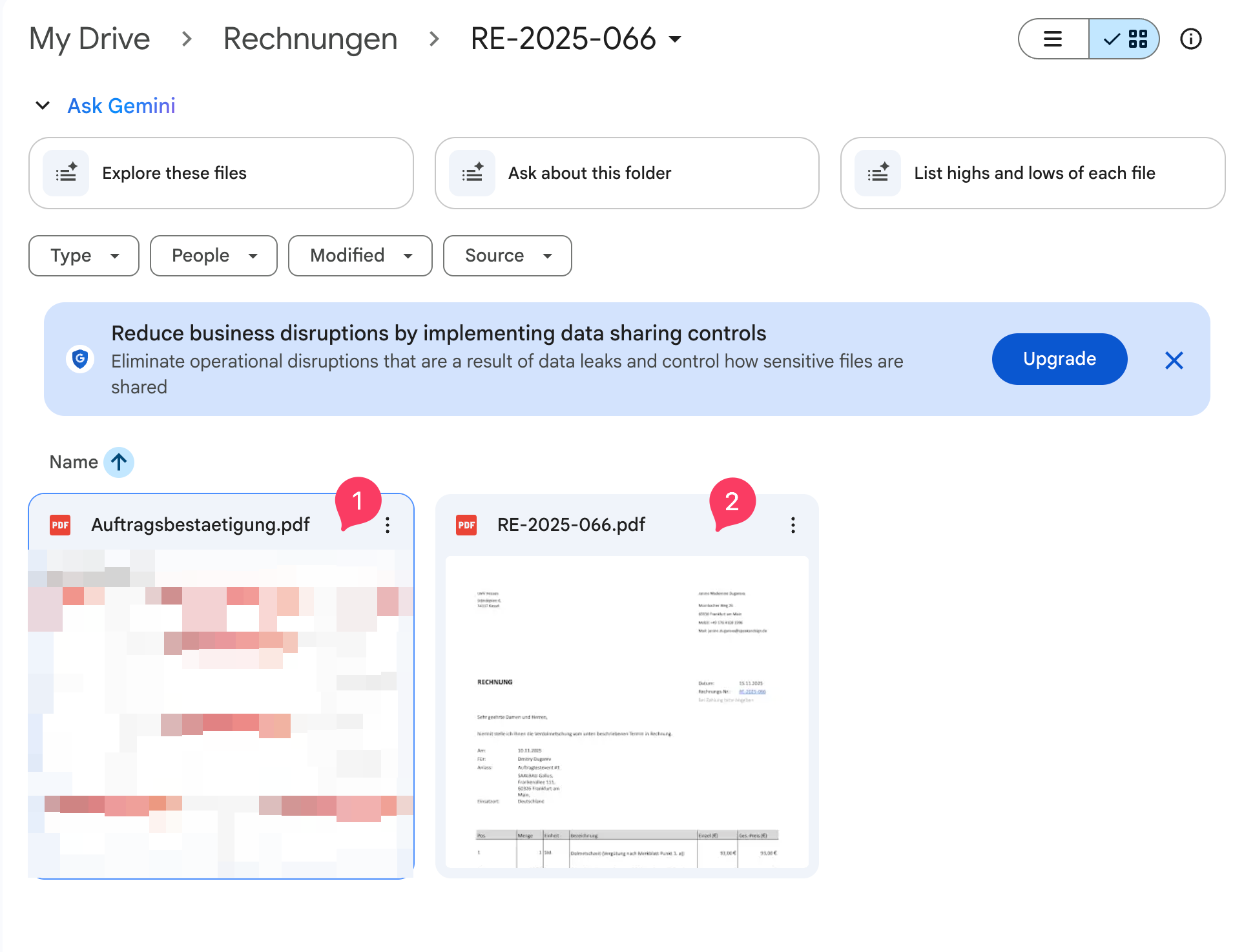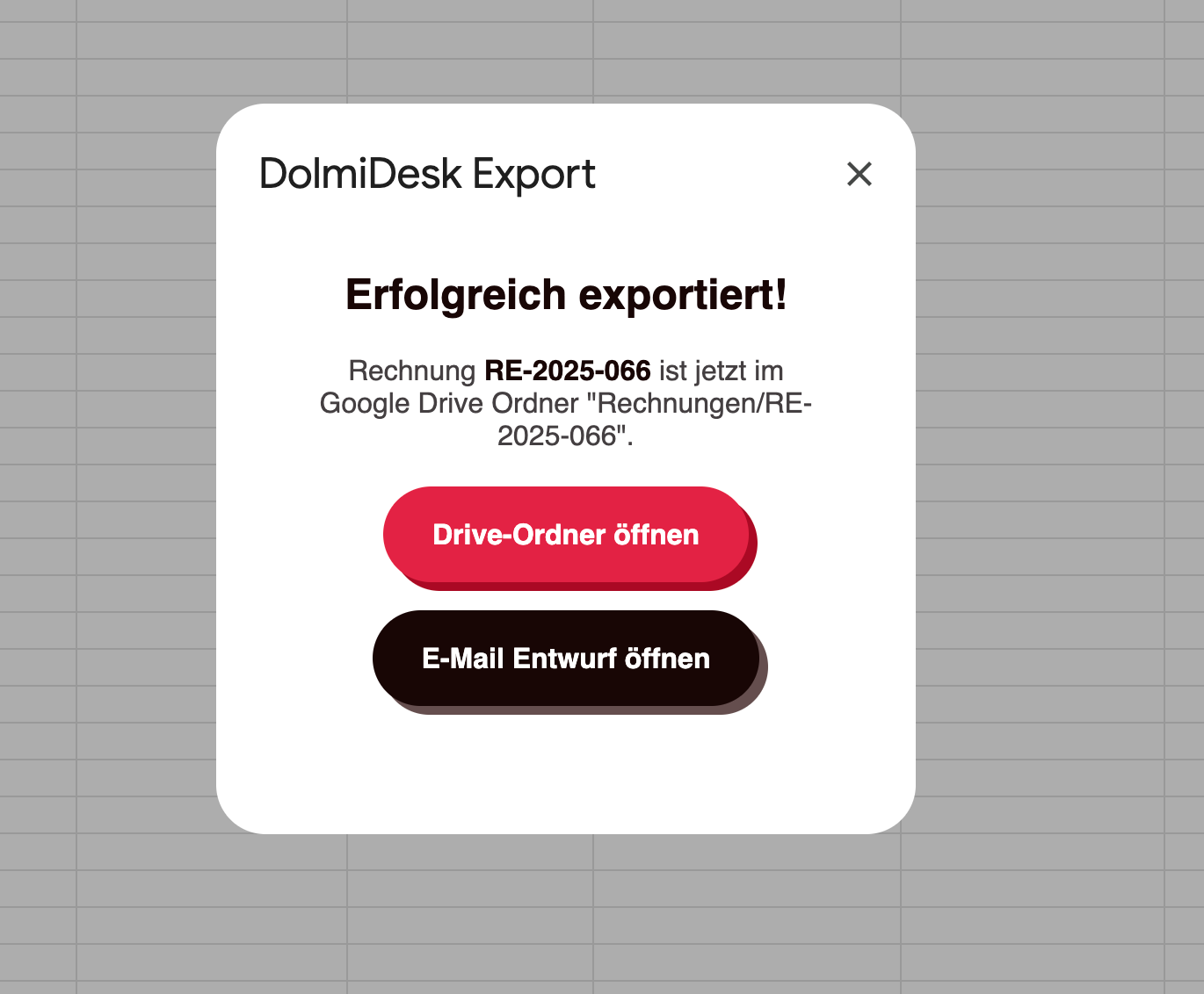 Rechnungenin Deinem Drive (kann in der Config definiert werden) einen UnterordnerRE-2025-066. -