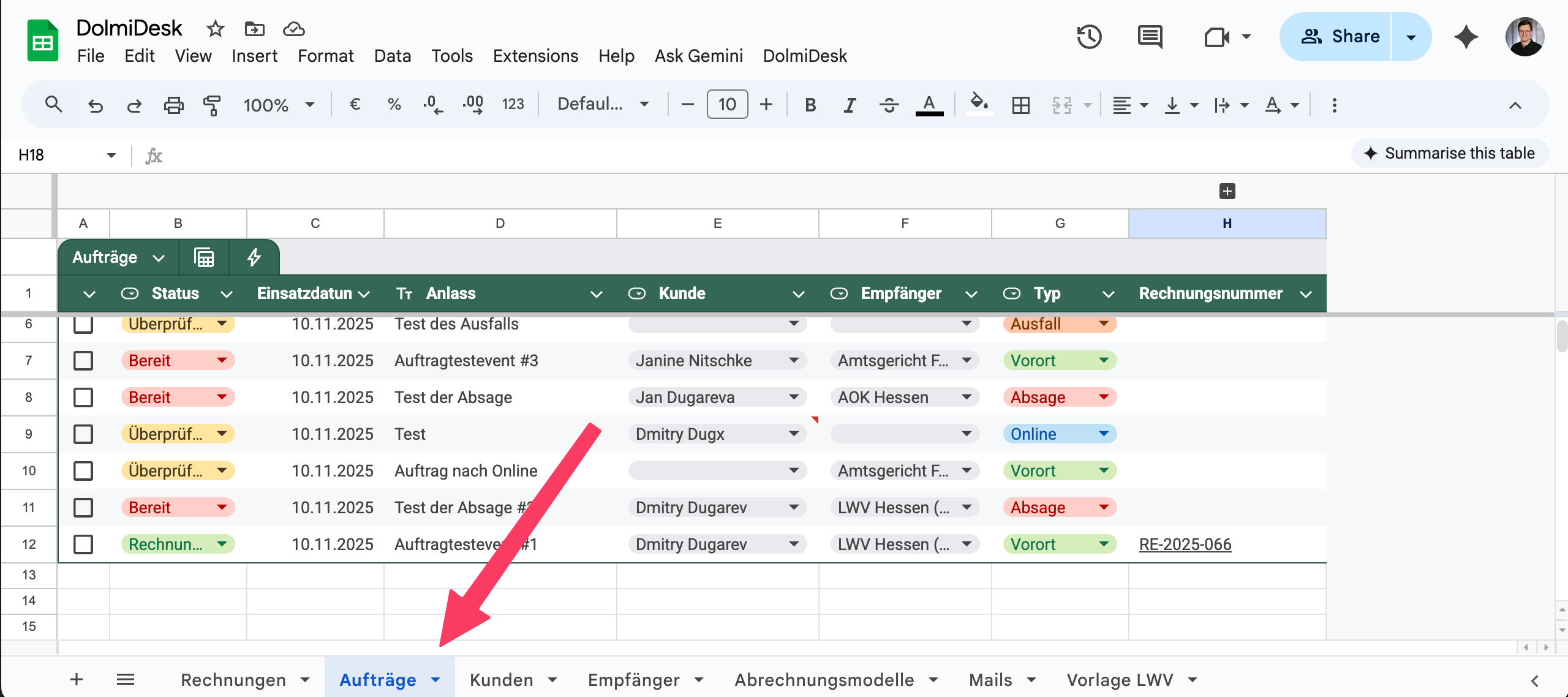 Dieser Artikel erklärt den kompletten Fluss: Wie Du Termine eintragen musst, wie das System sie versteht (Logik) und wie sie im Tab Aufträge landen.