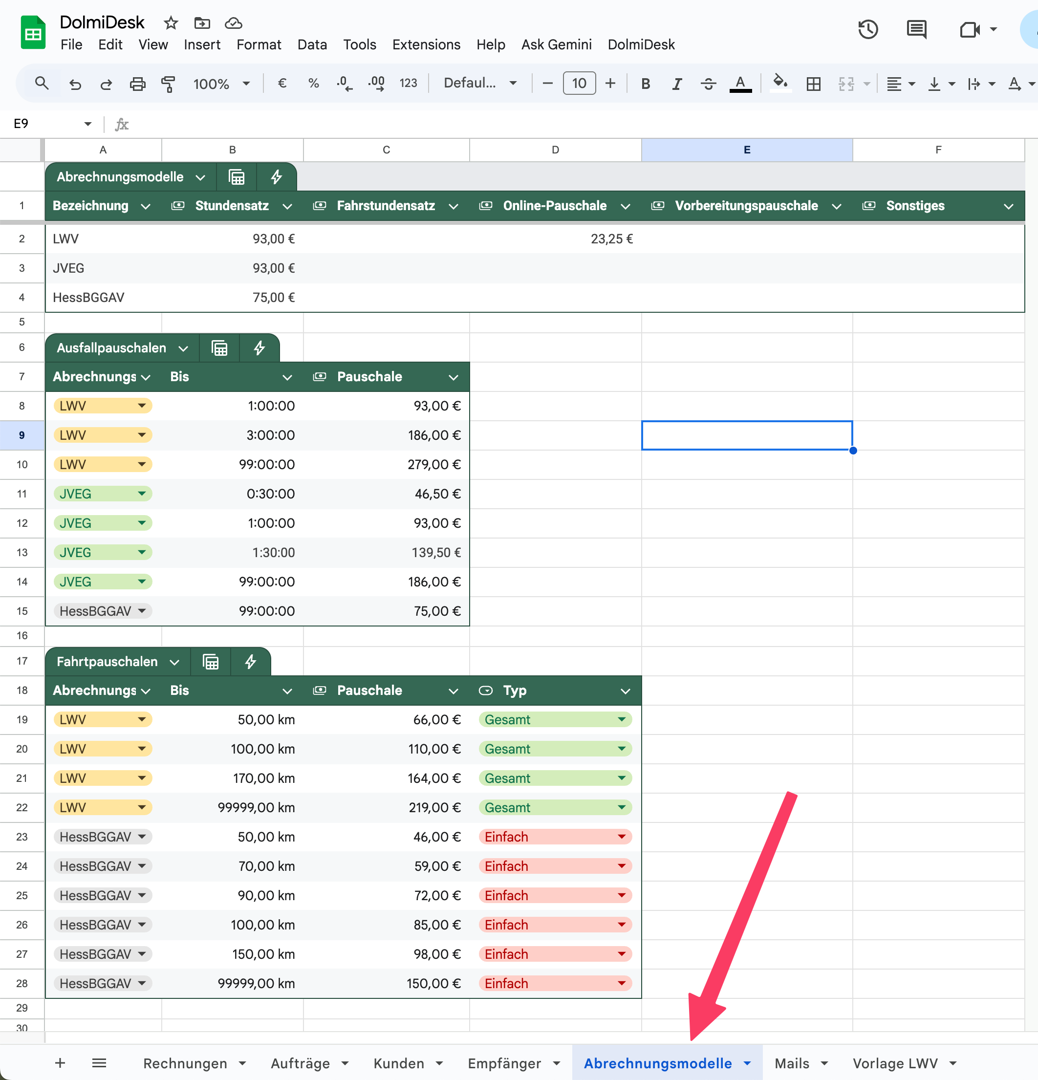 Tabelle "Abrechnungsmodelle" (Die Basis)