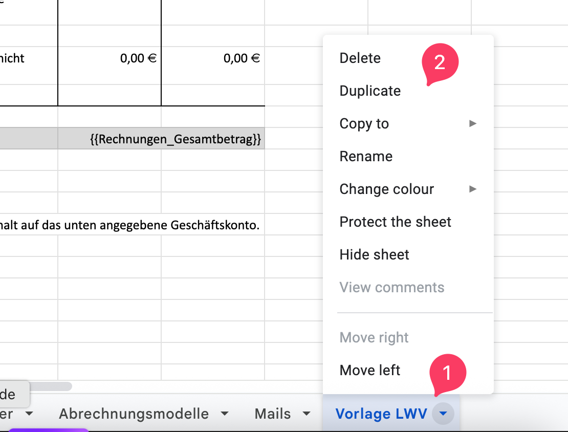 Vorlage LWV(unten in der Leiste). - Wähle Duplizieren.