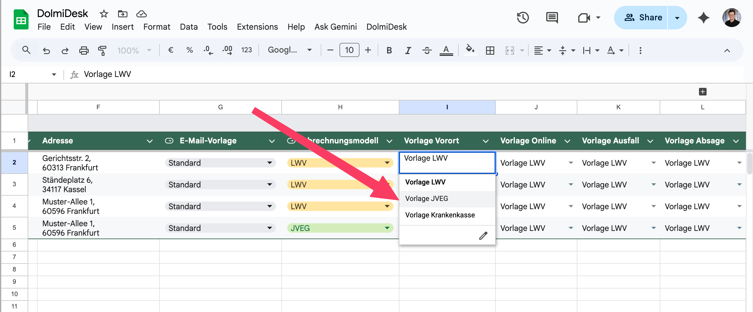 Vorlage Vorort(oder Online/Ausfall). - Wähle Deine neue