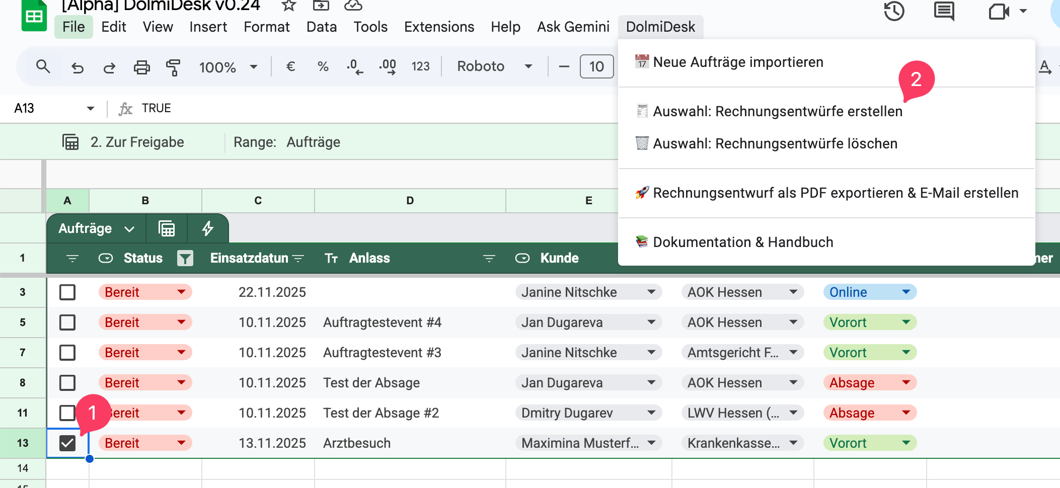 DolmiDesk™→🧾 Auswahl: Rechnungsentwürfe erstellen.