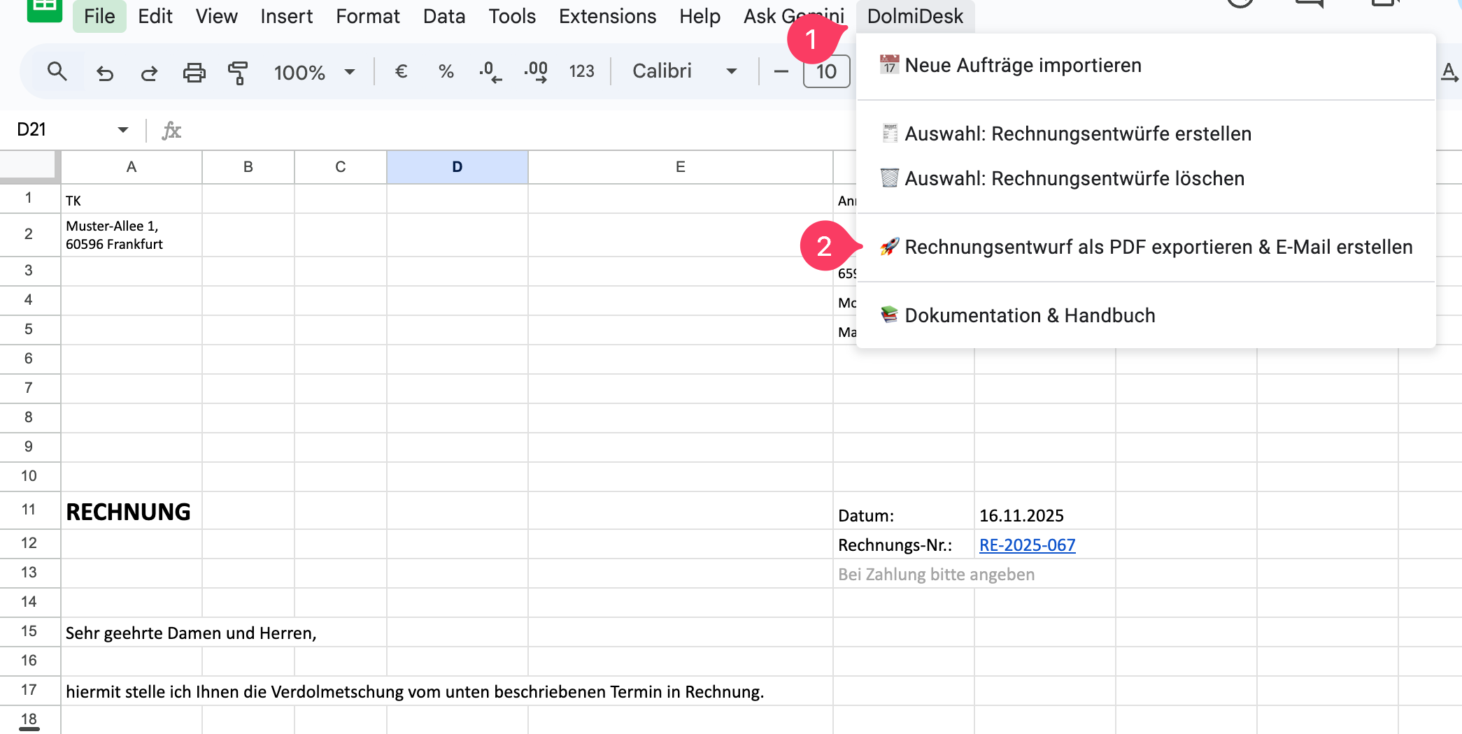 DolmiDesk™→🚀 Rechnungsentwurf exportieren (PDF & Mail)