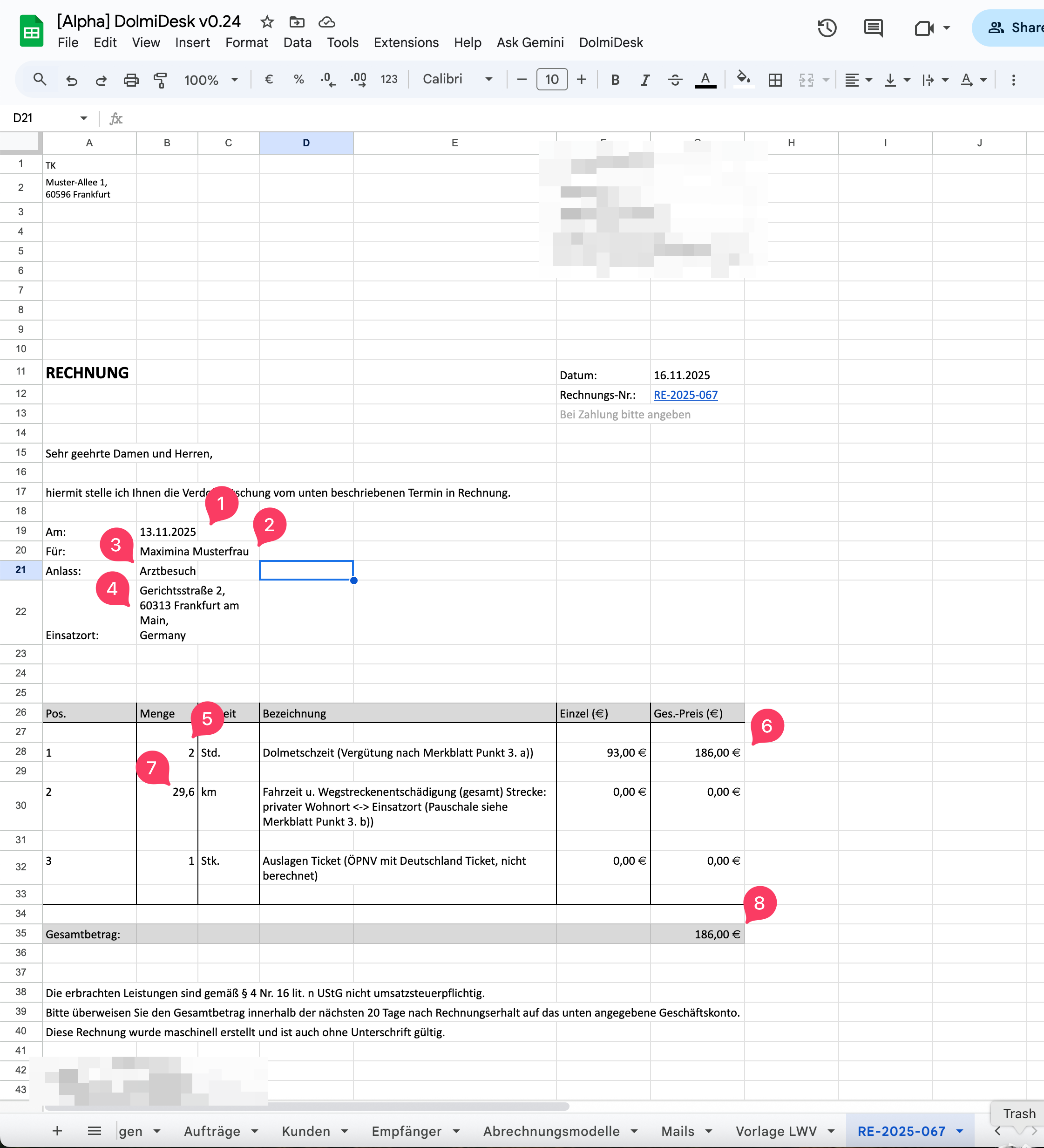Rechnung RE-2025-067(aus E-Mail Vorlage) - Text: "Sehr geehrte Damen und Herren..." (aus E-Mail Vorlage)