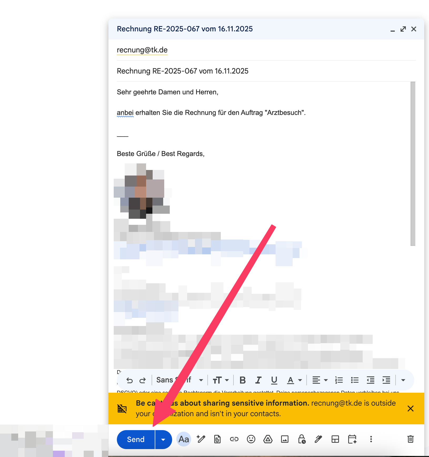rechnung@tk.de(aus Stammdaten) - Betreff: